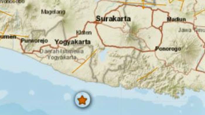 Lokasi pusat gempa berada di 44 km Tenggara Gunung Kidul DIY.