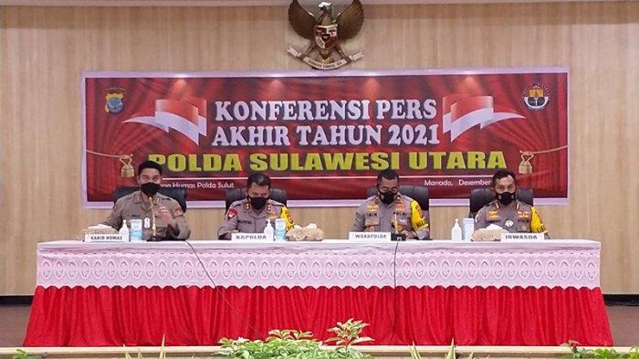 TRIBUNMANADO CO.ID, Manado - Kapolda Sulawesi Utara Irjen Pol Mulyatno memimpin Konferensi Pers Akhir Tahun 2021, yang digelar di aula Catur Prasetya Polda Sulut, Kamis (30/12/2021).