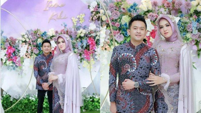 Sedangkan Kiki mengenakan kemeja panjang batik yang serasi dengan bawahan tunangannya.
