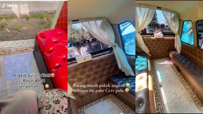 Dalam video yang beredar, tampak angkot lengkap dengan fasilitas tempat duduk sofa, lantai keramik hingga CCTV.