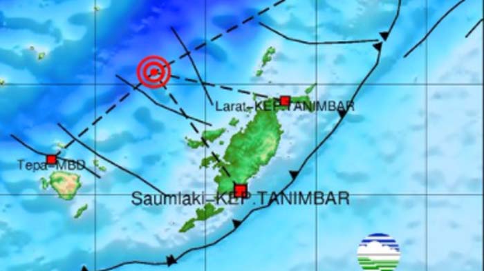 Titik pusatnya di 135 km Barat Larat-KEP.TANIMBAR, 136 km Timurlaut Tepa-MBD.