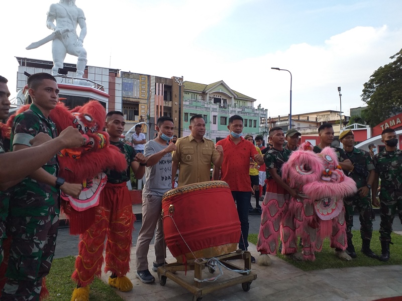 Manado, TRIBUNMANADO.CO.ID - Menyambut Hari Raya Imlek yang jatuh pada Selasa (1/1/2022), Perguruan Liong Houw bersama TNI AD menggelar perutunjukan kecil Barongsai.