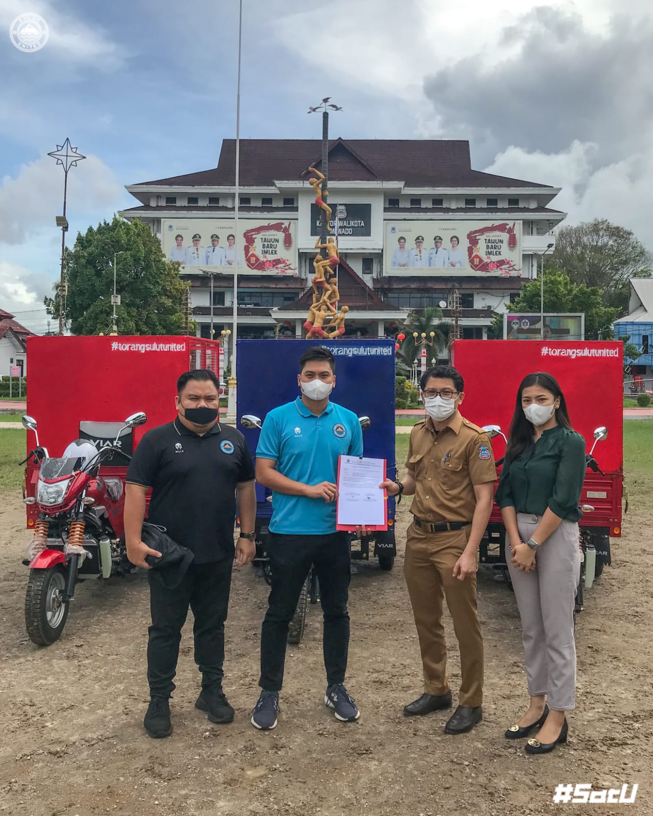 Tim sepakbola profesional asal Sulawesi Utara yaitu Sulut United FC menyerahkan bantuan tiga unit motor sampah untuk warga Kota Manado.