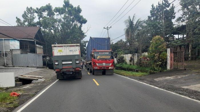 Amatan tribunmanado.co.id, perlambatan terjadi di sejumlah titik saat kendaraan kontainer melintas.