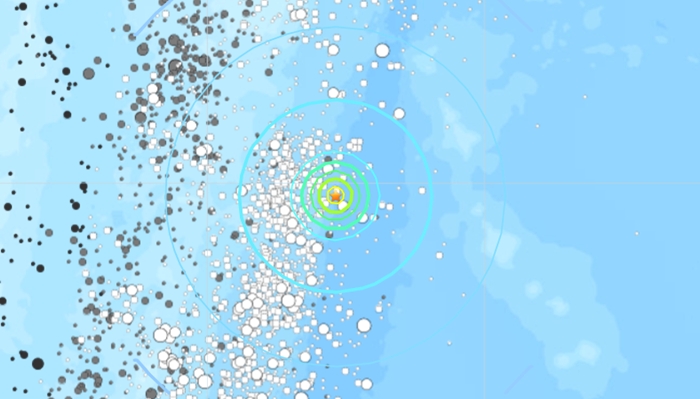Titik pusat gempa di laut, di wilayah Kepulauan Kermadec, Selandia Baru.
