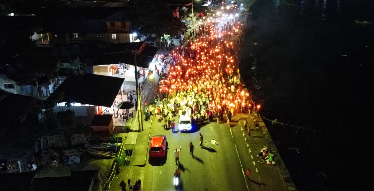 Sambut Ramadhan 1443 H, Ratusan Warga Kepulauan Sangihe Gelar Pawai Obor