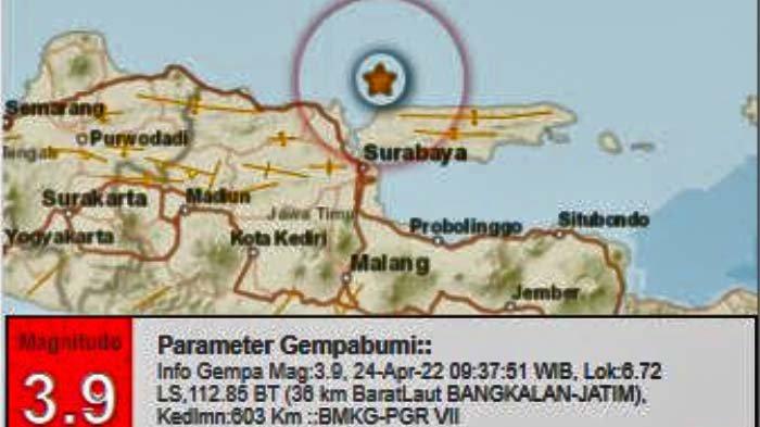Gempa di Bangkalan Minggu 24 April 2022, Baru Terjadi, Berikut Info BMKG, Magnitudo dan Titik Pusat