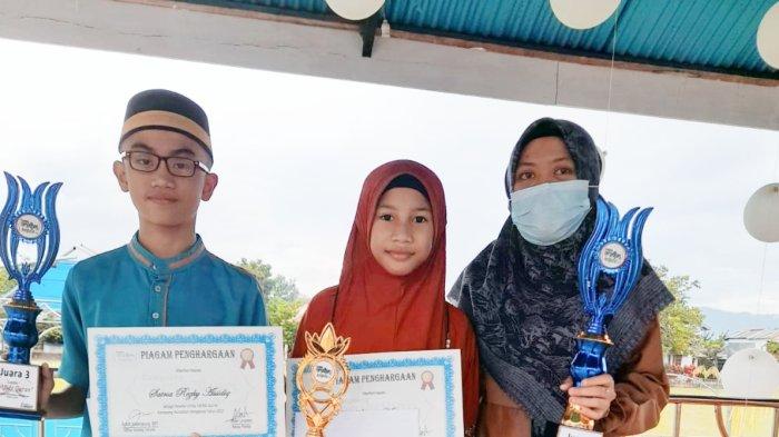 Mazidatur Khoiroh Juara 1 lomba Tahfidz Qur'an, Satria Assidiq Juara 3 Lomba Tahfidz Qur'an dan Ileng Momontan Juara 1 Lomba Mewarnai.