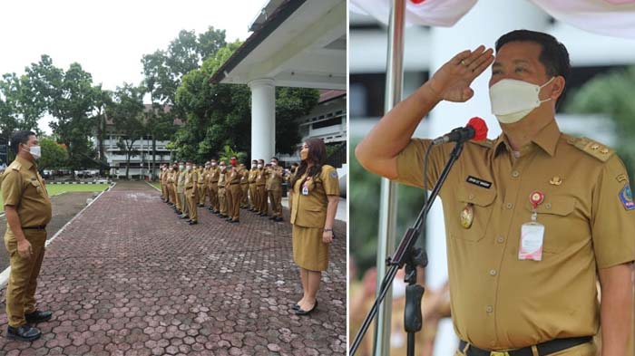 Wagub Sulut, Steven Kandouw memimpin apel Perdana usai Libur Lebaran di Halaman Kantor Gubernur Sulut, Senin (9/5/2022) Pagi. (Istimewa/Pemprov Sulut)