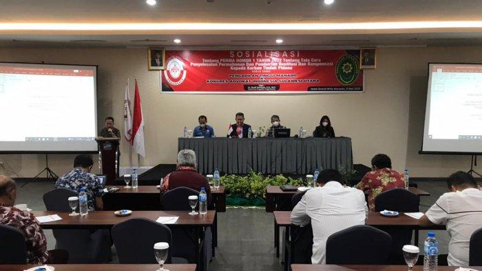 Manado, TRIBUNMANADO.CO.ID - Dewan Pimpinan Daerah (DPD) Kongres Advokat Indonesia (KAI) Sulawesi Utara (Sulut) bersama Pengadilan Tinggi (PT) Manado gelar sosialisasi Perma No 1 Tahun 2022, Sabtu (21/05/22).