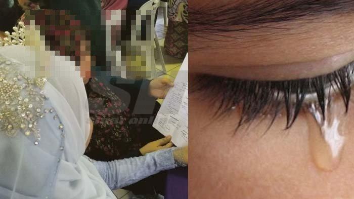 Air mata DH tak terbendung di kursi pelaminan. Ia harus menahan malu duduk seorang diri mengenakan pakaian pengantin.