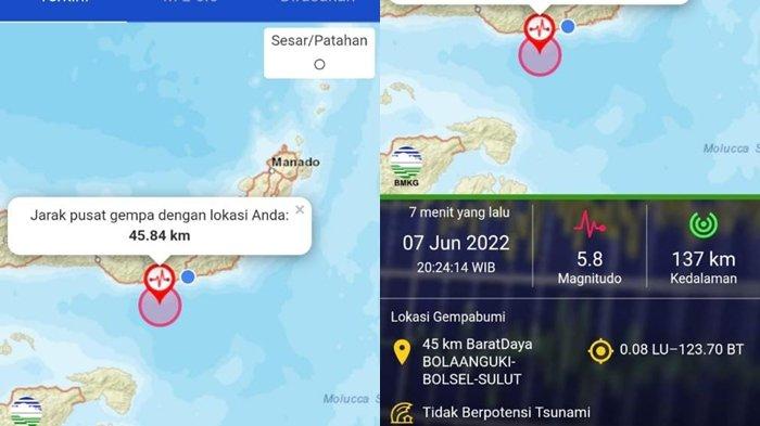 Manado, TRIBUNMANADO.CO.ID - Wilayah pantai Selatan Bolaang Mongondow Selatan, Sulawesi Utara diguncang gempa tektonik berkekuatan 5,8 pada pukul 20.24 WIB, Selasa (7/6/2022)
