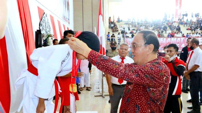 TRIBUNMANADO.CO.ID - Bupati Minahasa Royke Octavian Roring, MSi menghadiri pembukaan kejuaraan terbuka Karate Kajati Cup III di Gedung Wale Ne Tou Tondano Kabupaten Minahasa, Sabtu (23/7/2022).