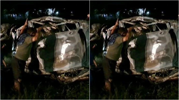 Kecelakaan Maut Tadi Malam, 4 Orang Tewas, Mobil Xpander Terpental dan Terbakar Usai Ditabrak Kereta