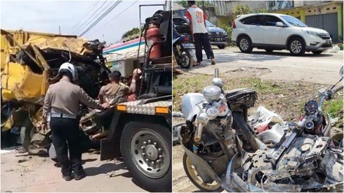 Kecelakaan itu melibatkan kendaraan truk, mobil dan 3 kendaraan sepeda motor.