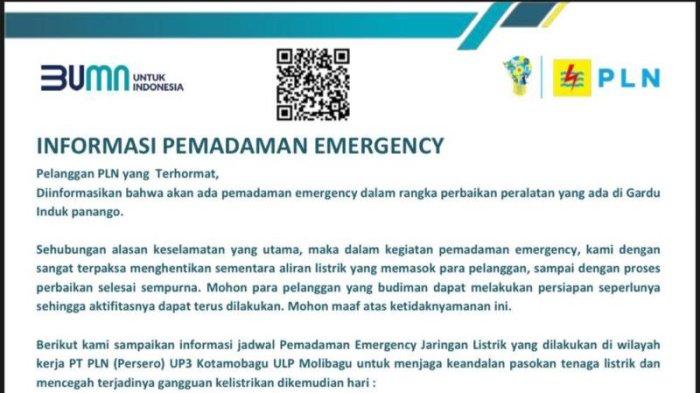 BREAKING NEWS, PLN Menginformasikan Jam Pemadaman Listrik di Wilayah Bolsel Sulawesi Utara