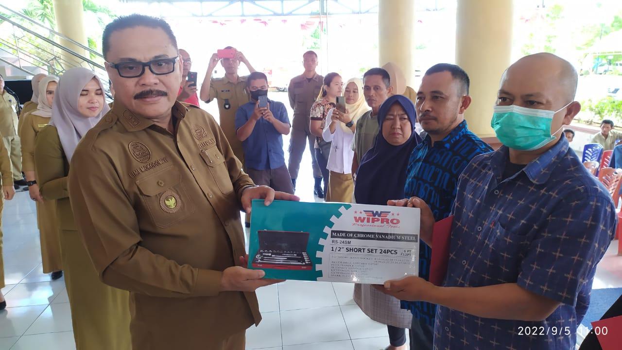 4. Kelompok Pogogutat dari Kelurahan Imandi menerima bantuan alat perbengkelan.