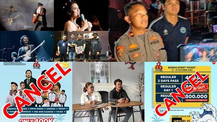 Manado, TRIBUNMANADO.CO.ID - Festival musik Boboca Fest yang seharusnya diselenggarakan hari ini Jumat 14 Oktober 2022 hingga besok Sabtu 15 Oktober 2022 di lapangan KONI, Kecamatan Sario, Manado, resmi dibatalkan.