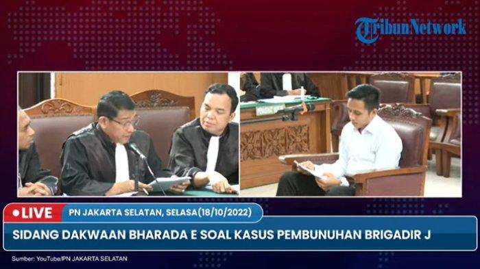 Bharada E saat berada di ruang sidang di Pengadilan Negeri (PN) Jakarta Selatan dalam kasus pembunuhan Brigadir J, Selasa (18/10/2022). (YouTube Kompas TV)