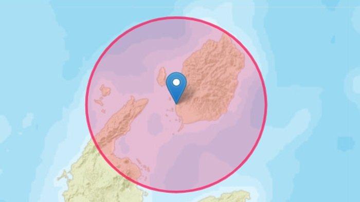 Koordinat titik gempa berada di 2.16 LU (Lintang Utara), dan 128.25 BT (Bujur Timur).
