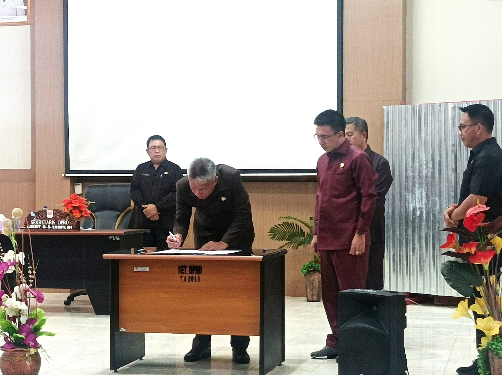 Dalam kegiatan tersebut juga dilangsungkan penandatanganan oleh ketua DPRD Minsel dan Bupati Minahasa Selatan.