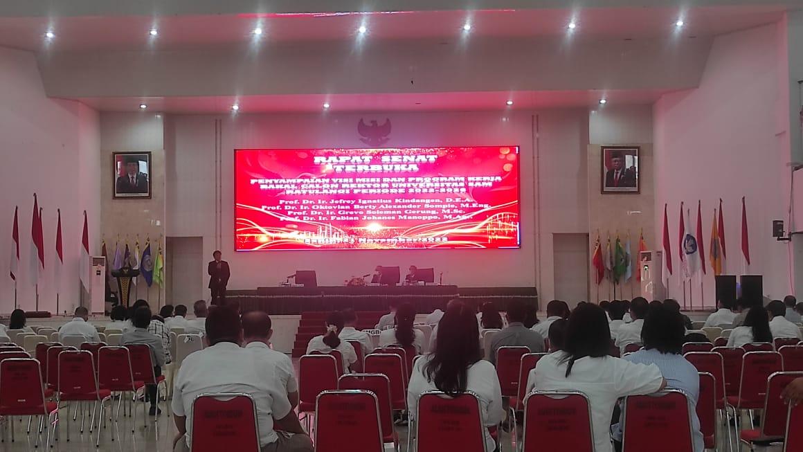 TRIBUNMANADO.CO.ID - Empat bakal calon Rektor Universitas Sam Ratulangi (Unsrat) 2022-2026, Manado, Sulawesi Utara memaparkan visi misi kepada Senat Unsrat.