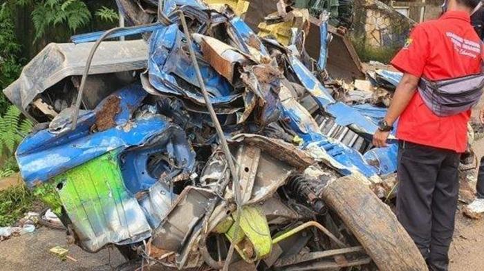 Angkutan kota (angkot) yang membawa 10 siswa sekolah ditemukan dalam kondisi ringsek. Angkot tersebut terlihat rusak parah.