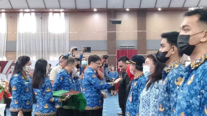 Pada kesempatan tersebut, Walikota juga menyerahkan secara simbolis penghargaan Satya Lencana Karya Satya kepada ASN Pemkot Manado yang telah mengabdi selama 10,20 dan 30 tahun dan juga menyerahkan SK PNS Tahun 2019.