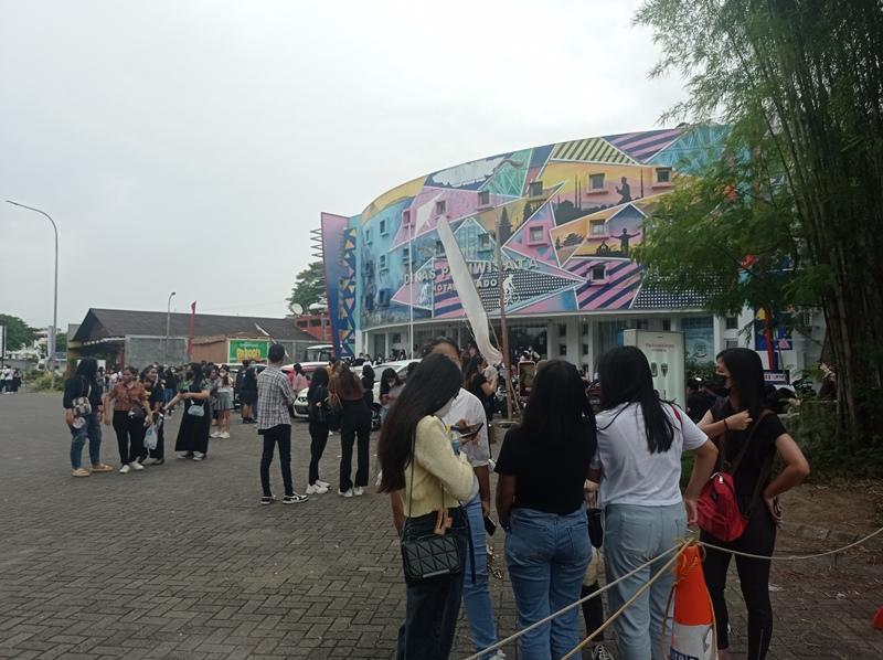 Puluhan masyarakat sudah mulai berkumpul di depan pintu masuk event konser musik band asal Korea Secret Number.