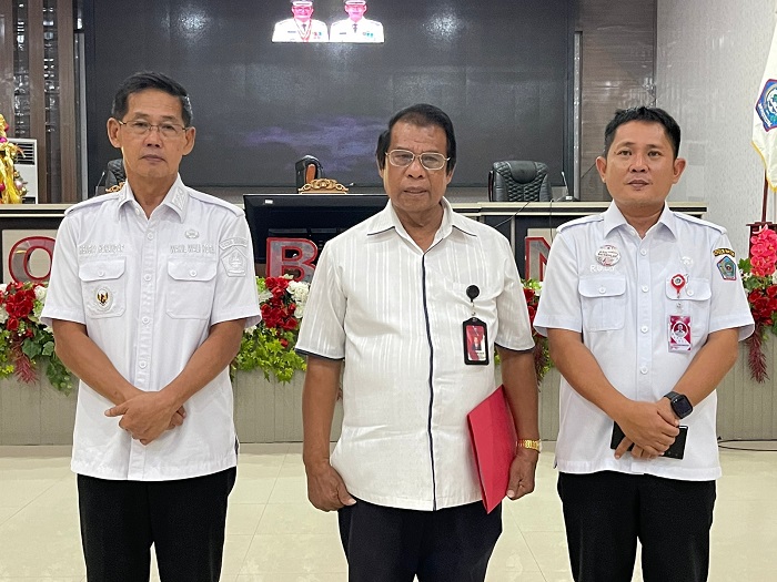 Ketiga pimpinan Perumda Pasar Kota Bitung yakni Direktur Utama Harto Kahiking, Direktur Administrasi Umum dan Keuangan Tasman Balak dan Direktur Operasional Victor Turambi.