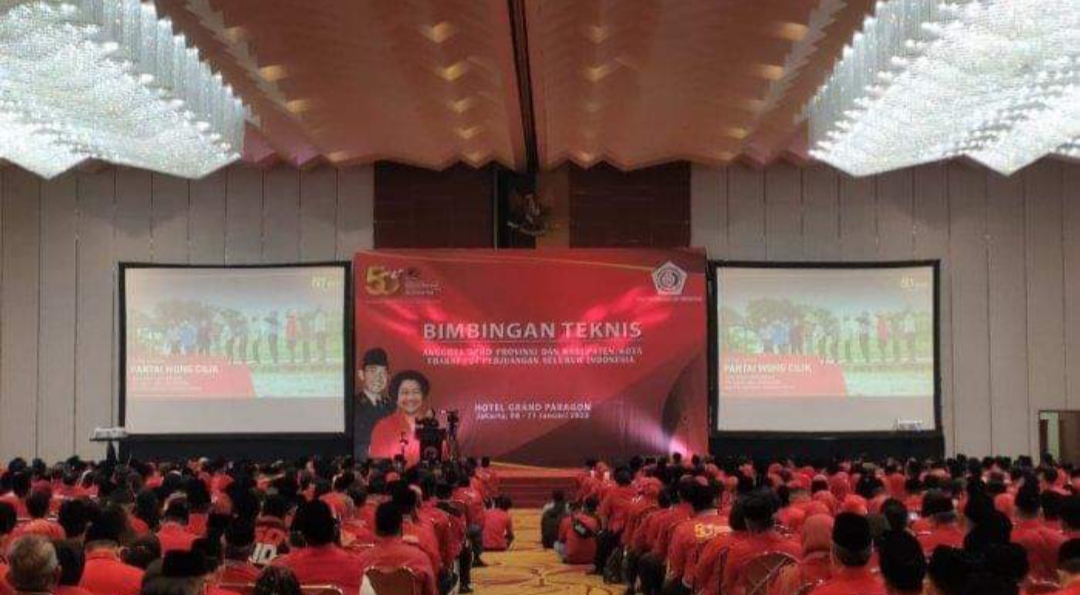 TRIBUNMANADO.CO.ID - Ratusan kader PDI Perjuangan Manado mengikuti apel akbar di Jakarta dalam rangka HUT PDI Perjuangan ke 50, Selasa (10/1/2023).