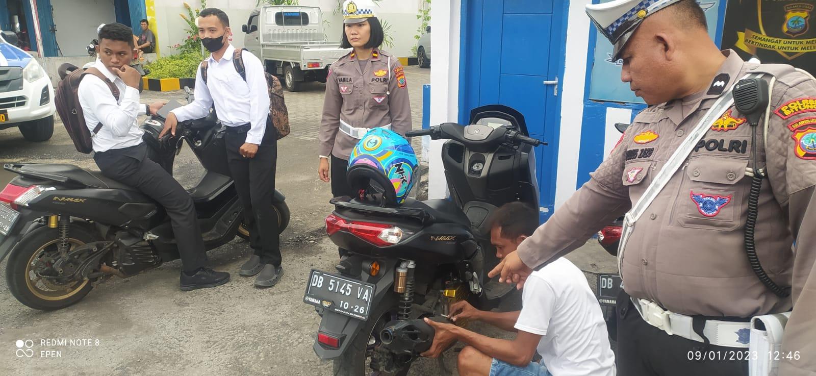 Razia tersebut berlangsung di pos polisi Girian, Kota Bitung, Provinsi Sulawesi Utara (Sulut), yang dipimpin Kanit Turjawali Satlantas Polres Bitung Ipda Nabila Azizah Adama.