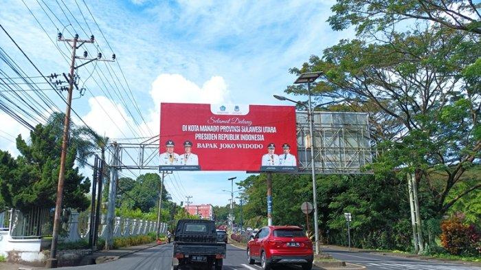 Baliho Sambut Presiden Jokowi Bertebaran di Jalan AA Maramis Kota Manado Sulawesi Utara
