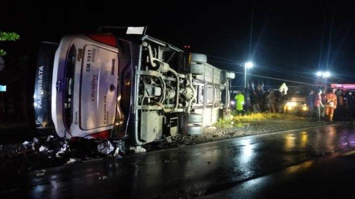 Kecelakaan Maut Pukul 19.15 WIB, 1 Pemotor Tewas, Bus Isi 49 Siswa SMP Terbalik Menimpa 2 Motor