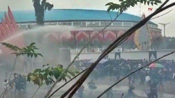 Hingga akhirnya polisi menembakkan gas air mata, untuk mengurai masa yang ricuh itu.