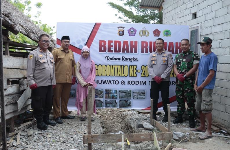 “Bahwa dalam rangka menyambut Hari Ulang Tahun Polda Gorontalo ke-20, Kapolda ingin mengisinya dengan kegiatan-kegiatan yang bisa memberikan manfaat bagi masyarakat banyak salah satunya membantu menyediakan rumah layak huni bagi yang membutuhkan, Bapak Kapolda telah memerintahkan jajaran Polres untuk mencari masyarakat yang kurang mampu dan tinggal di rumah yang tidak layak huni untuk dibantu melalui program bedah rumah,” Jelas Wahyu.