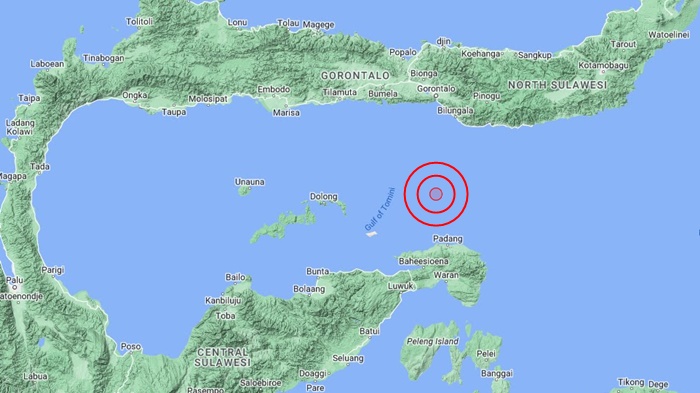 Titik lokasinya ada di koordinat 0.21 lintang selatan, 122.87 bujur timur.