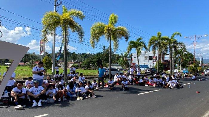 Masyarakat rela duduk melantai di aspal jalan raya.