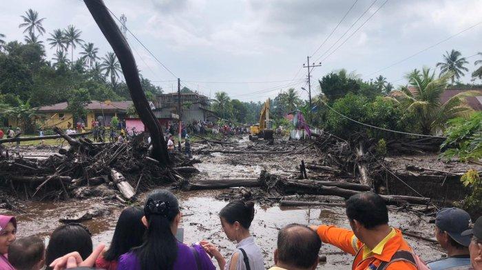 Banjir bandang terjang Desa Klabat, Jaga 6 Kecamatan Dimembe, Minahasa Utara (Minut), Sulawesi Utara, Sabtu (18/3/2023).