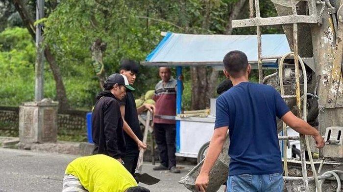 Seorang pemuda yang juga pengusaha bernama Bambang, mengeluarkan uang pribadi untuk cor lubang-lubang jalan tersebut.