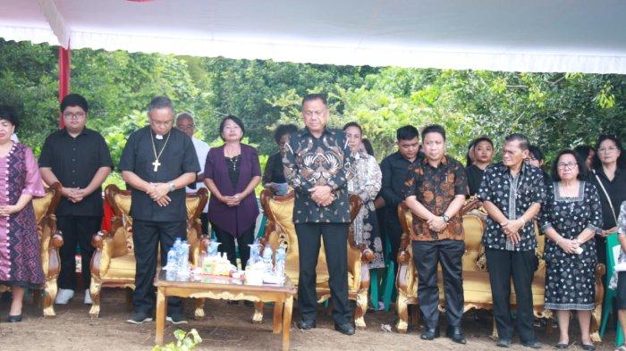 Ibadah peletakan batu pertama dipimpin Ketua BPMS GMIM Pdt Hein Arina. Olly Dondokambey mengucapkan rasa syukurnya kepada Tuhan.