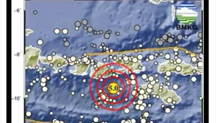 Gempa bumi terkini wilayah Nusa Tenggara Barat (NTB) pada Minggu (9/4/2023). Magnitudo 5,0.