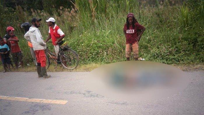 Stef Wilil tewas di tepi jalan Kampung Mulima, Distrik Libarek, Kabupaten Jayawijaya, Papua Pegunungan, Senin (10/4/2023).