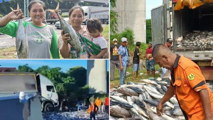 Kecelakaan Truk Pengangkut Ikan, Warga Diberikan Tongkol Gratis, Terjadi Tadi Pagi di Tol Jatibening
