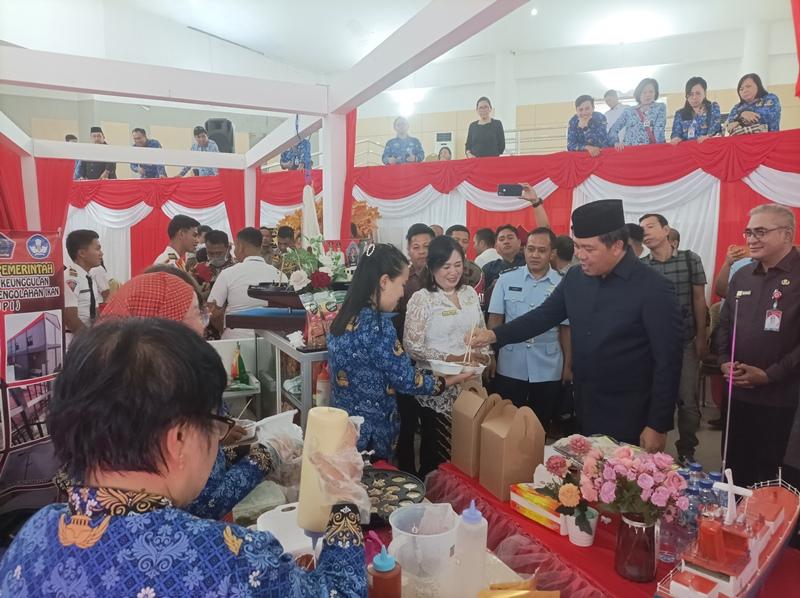 Di stand SMK Negeri 3 Manado, Steven Kandouw disuguhi kue karya para siswa.