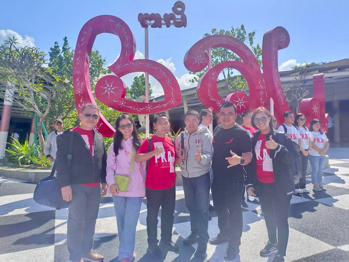 Keberadaan enam camat asal Bitung di Bali tersiar dalam sebuah foto di depan ikon tulisan Bali.