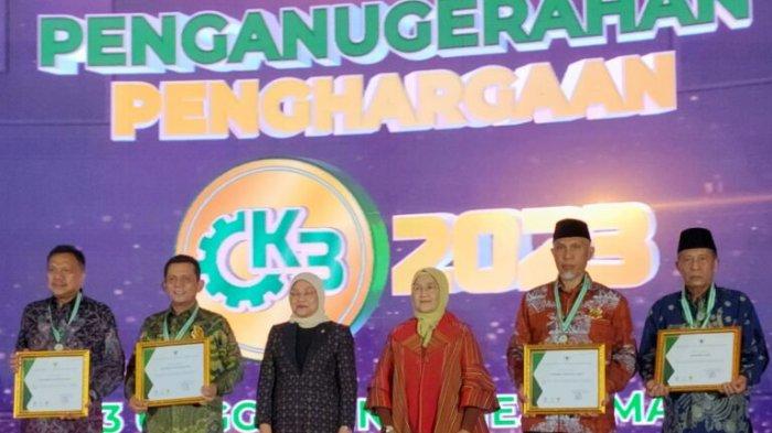 Penganugerahan K3 bagi perusahaan dan para gubernur selaku pembina K3 itu, diserahkan langsung oleh Menteri Ketenagakerjaan Ida Fauziyah kepada Gubernur Olly, di The Opus Grand Ballroom, The Tribrata Jakarta, pada Kamis (22/6/2023).