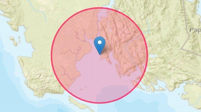 Koordinat titik gempa berada di 3.62 LS (Lintang Selatan), dan 133.68 BT (Bujur Timur).