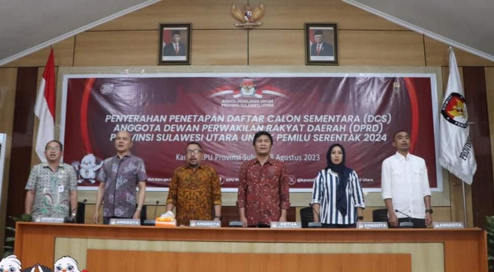 Komisi Pemilihan Umum (KPU) Sulawesi Utara menetapkan Daftar Calon Sementara (DCS) DPRD Provinsi Sulawesi Utara untuk Pemilu 2024.