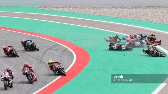 Pemimpin klasemen sementara, Francesco Bagnaia alami kecelakaan horor di lap pertama.